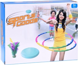 Ta pisani komplet za na prosto ponuja vse, kar otroci potrebujejo za aktivno zabavo. S kombinacijo hula hoopa s premerom 55 cm, lahkega diska za metanje, kolebnice z nastavitvijo do 255 cm, napihljivih žogic in barvite pernaté lotke si otroci razmigajo celo telo, izboljšajo ravnotežje in natančnost metov.