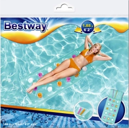 Ta plažna blazina BESTWAY je idealna za sprostitev v bazenu, ob jezeru ali morju. Velikodušna površina 188 × 71 cm udobno sprejme odraslega, integrirani vzglavnik pa nudi prijetno oporo glavi.