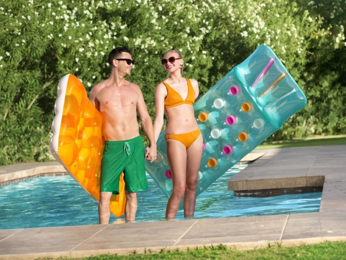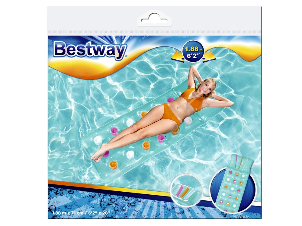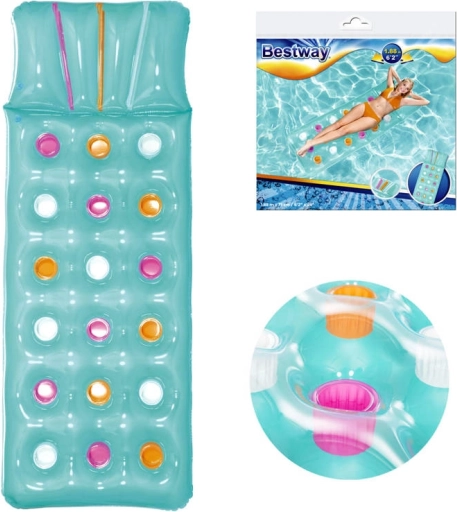 Uživajte poletje na polno z napihljivo blazino BESTWAY z integriranim vzglavnikom. Ponuja udobno ležanje, stabilno konstrukcijo iz trpežnega PVC in nosilnost do 90 kg. Barvit dizajn popestri vsak bazen in plažo, kompaktne mere pa omogočajo, da jo zlahka vzamete s seboj kamor koli.