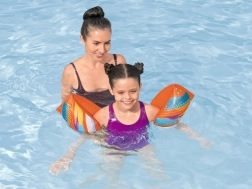 Očitna oranžna barva in poletna grafika z metulji zagotavljata odlično vidnost v bazenu, na jezeru in ob morju. Rokavčki so idealni za otroke, stare 5–12 let, s priporočeno težo 24–60 kg.