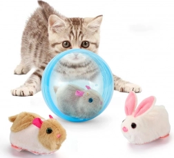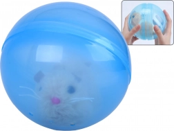 Hrček se v prozorni modri krogli spontano premika, kar naravno vabi otroke k opazovanju ter mačke in pse k igri.