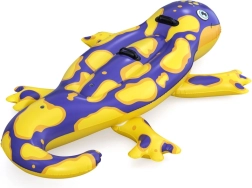 Napihljiv jahalni plavalni obroč v obliki živahno obarvane salamandre je idealen za bazen, jezero ali morje. Zaradi živih barv je odlično viden in otroci ga bodo takoj vzljubili. Dva integrirana ročaja olajšata vstopanje, držanje med igro in prenašanje.