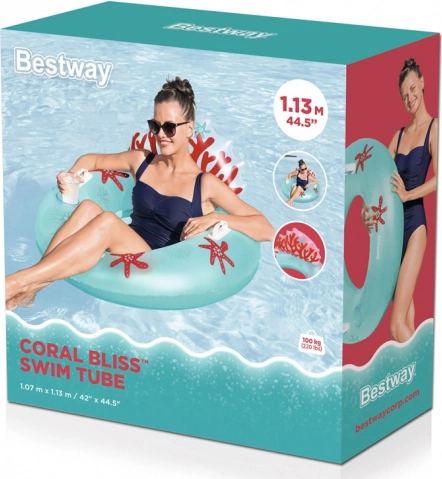 Napihljiv obroč z osupljivim motivom koralnega grebena navduši z dizajnom in barvitostjo ter pritegne pozornost vseh ljubiteljev sprostitve na vodi. Dva čvrsta ročaja olajšata vstop in izstop iz obroča, medtem ko vgrajeno držalo za pijačo omogoča udobno uživanje osvežilne pijače brez prekinjanja sprostitve.