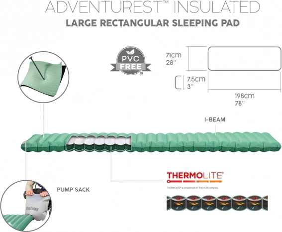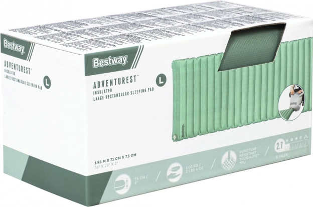 Napihljiva podloga Bestway AdventuRest je popoln spremljevalec za vaše zunanje pustolovščine. Zahvaljujoč patentiranemu sistemu AirCinch™ boste uživali v lahkem in hitrem napihovanju, ki ne zahteva dodatnih orodij. Dovolj je, da jo stisnete z rokami in podloga se napolni z zrakom.