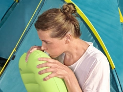 Napihljiva blazina Bestway WanderLite je izdelana iz vzdržljivega materiala ToughLite in mehkega, elastičnega poliestrskega pletiva 50D. Je lahka in ne zavzame veliko prostora, enostavno se zloži in prenaša. Zaradi ovitka, v katerega jo po vsaki uporabi lahko shranite, je shranjevanje enostavnejše.