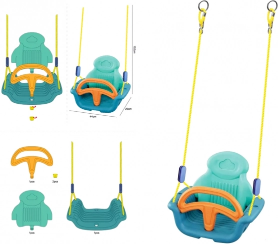 Ta modularni gugalnik je idealen tako za mlajše kot za starejše otroke. Zaradi dvofazne regulacije zaščitne prečke lahko gugalnik raste z otrokom, zagotavlja mu pravilno oporo in varnost. Največja dovoljena teža uporabnika je 50 kg, kar pomeni, da je gugalnik primeren za večino otrok. Dimenzije gugalnika: 44cm x 29cm x 152cm. Ta barvni in funkcionalni gugalnik otroku ne prinaša le veselja do igre, ampak mu tudi pomaga razvijati motorične sposobnosti in ravnotežje. Je odlična rešitev za starše, ki iščejo varno in privlačno igračo za svoje otroke, tako za uporabo v hiši kot na vrtu.