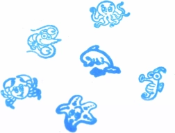 Štampiljke iz trpežne plastike so zasnovane za večkratno uporabo doma in v vrtcu. Ergonomska oblika olajša oprijem otroškim rokam.