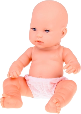 Lutka ima premične okončine za enostavno pozicioniranje in je v celoti izdelana iz kakovostne plastike, ki je trpežna in jo je enostavno čistiti. Košarica z ročaji omogoča udobno prenašanje doma in na poti. Realistična izdelava podpira igranje vlog, razvija empatijo in fino motoriko.