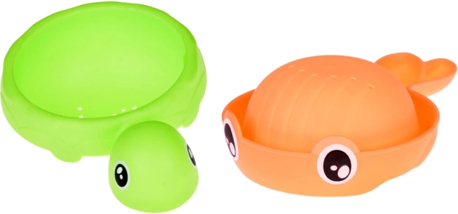 Z močnimi priseski igračo preprosto pritrdite na ploščice ali stranico kadi. Otroci lahko prelivajo vodo z lončki v obliki zelene želvice in oranžne ribice, s tem urijo koordinacijo oko–roka in fino motoriko ter hkrati uživajo v varni in ustvarjalni vodni zabavi.