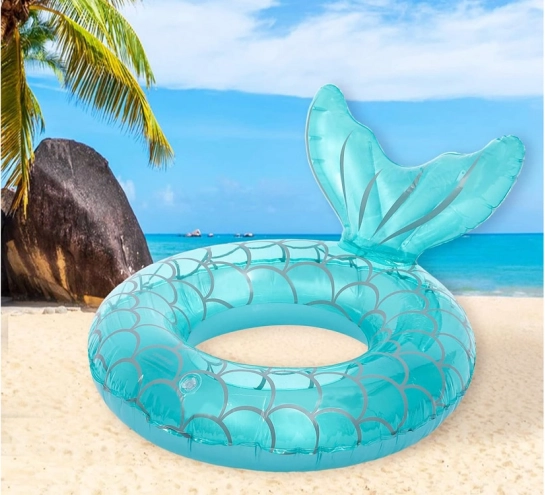 Prisrčen otroški plavalni obroč z motivom morske vile prinaša varno zabavo v vodi in spodbuja učenje plavanja. Zaradi izrazite plavuti in protizdrsne stabilnosti na vodi bodo otroci uživali ure igre v bazenu, ob morju ali na jezeru. Trpežna plastika z vzorcem lusk v turkizno modri barvi navduši na prvi pogled.