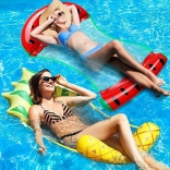 Napihljiva viseča mreža tipa "pineapple" združuje zabaven dizajn in pametno zasnovo: dva zračna valja ob straneh za stabilnost ter med njima čvrsta najlonska mreža, na kateri udobno počivate. Ostajate delno potopljeni, zato se med sončenjem naravno ohlajate.