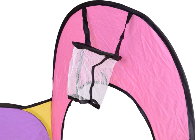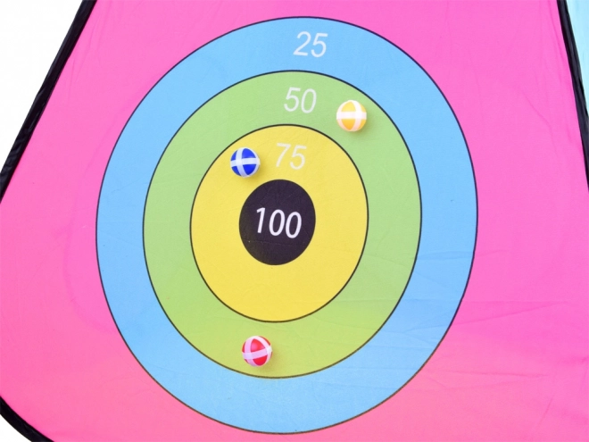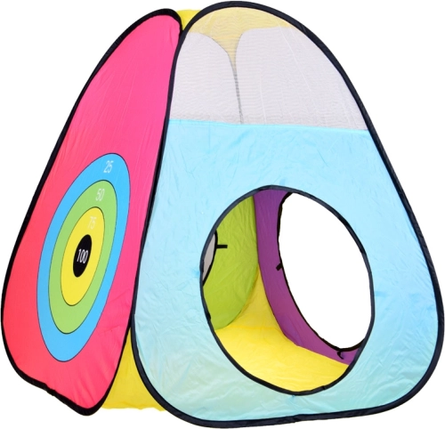 Trikotni šotor z barvno tarčo in odprtinami za ciljanje razvija natančnost in motoriko. Odlična tekmovalna zabava za male strelce.