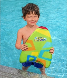 Deska z dimenzijami 42x32x35 cm ima ergonomsko obliko. Izdelana je bila iz trpežne pene z odličnim plovkom. Poleg tega je bila obložena s tkanino z barvno grafiko, ki zagotavlja udoben prijem in preprečuje zdrs iz rok. Primerno za otroke od 3 do 6 let.