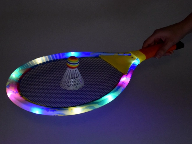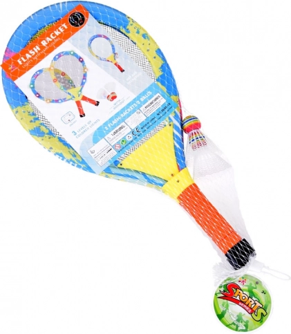 V paketu najdete dva barvna loparja z udobnimi penastimi ročaji, ki zagotavljajo brezskrbno igro. Glavna privlačnost so LED luči ob obodu loparja (izven ročaja), ki zagotavljajo dobro vidljivost. Poleg tega ponujajo tri različne načine: hitro utripanje, počasi utripanje in stalno. Enostavno izberite tistega, ki vam je najbolj všeč, z enostavnim pritiskom na gumb na spodnji strani ročaja.