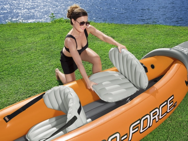 Kajak ponuja dovolj prostora za dve osebi in je opremljen z udobnimi napihljivimi sedeži z naslonjali za odlično izkušnjo plovbe.