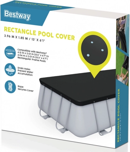 Pokrov za bazen Bestway je zasnovan za uporabo z nadzemnimi bazeni in nudi učinkovito zaščito pred insekti, pticami, listjem in rahlim dežjem. Prav tako ščiti otroke pred nenamernim padcem v bazen.
