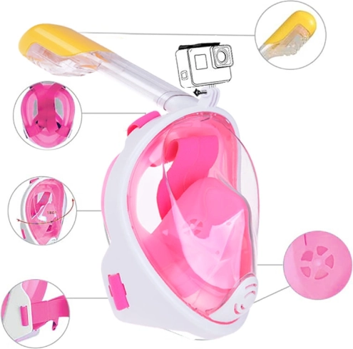 Odkrijte lepote podvodnega sveta brez napora s celoobrazno masko za potapljanje. Ta inovativna maska ponuja široko vidno polje 180° in enostavno dihanje z ločenimi kanali za vdih in izdih.