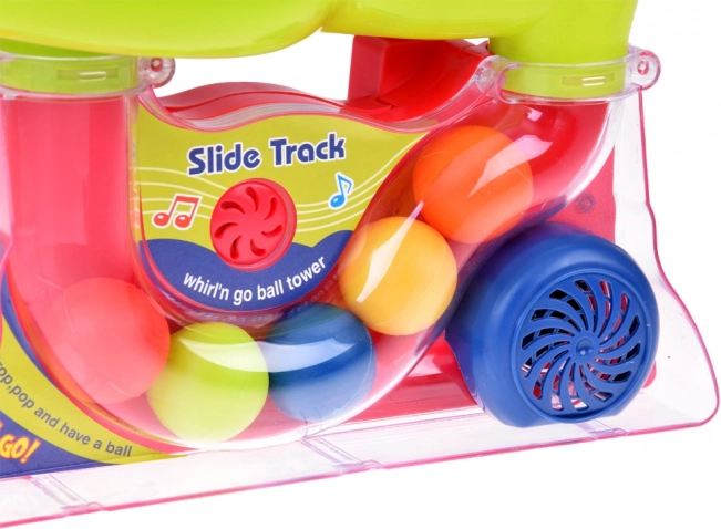 Z združevanjem gibanja in zvoka ta tobogan s kroglicami aktivno podpira motorične sposobnosti otrok in jih uči o vzroku in posledici.