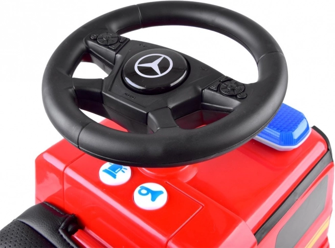 Poskrbite za zabavo in varnost vašega otroka s tem licenciranim vozičkom Mercedes v obliki gasilskega avta. Izdelano iz visokokakovostne plastike, nudi izjemno trpežnost in barvitost. Zahvaljujoč udobnemu sedežu z naslonjalom je vožnja ne le udobna, ampak tudi varna. Blokirni mehanizem preprečuje prevrnitev nazaj.
