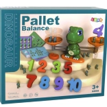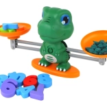 Dinozavrova tehtnica z dvema posodicama pomaga otrokom razumeti, kako uravnotežiti številke in količine. Idealno za prvo srečanje s pojmi več/manj in enako kot.