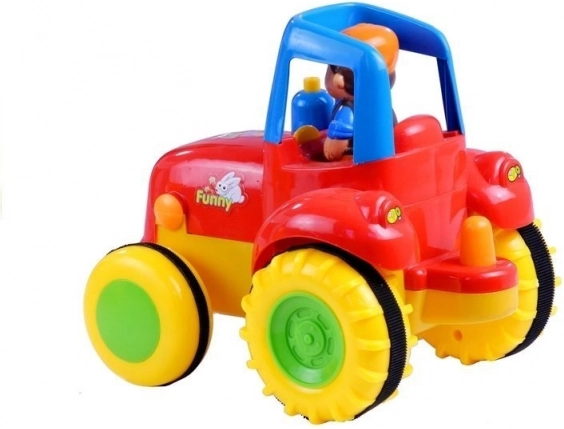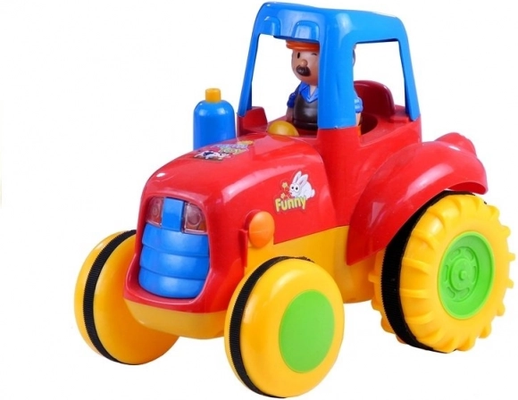 Traktor med vožnjo sveti in oddaja vesele zvoke, ki spodbujajo čutila in ohranjajo pozornost otrok.