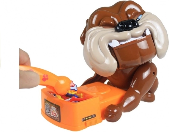 Vzemite kosti iz sklede, vendar pazite, da psa ne zbudite, ker je zelo jezen! Vse, kar morate storiti, je pripraviti jeznega psa na igro. Vstavite baterije (niso priložene), navijte ga, dokler ne položi glave na levo taco in ne zapre oči. Igro začne najmlajši igralec – izbere kost in jo poskuša vzeti s priloženo pinceto. Če se pes zbudi, igralec izpade iz igre. Za nadaljevanje igre je treba buldoga znova uspavati. Igra se nadaljuje, dokler ne ostane samo 1 igralec, ki ga pes ni ugriznil – ta igralec je zmagovalec.