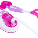 Otroški rožnati sesalnik je idealna igrača za posnemanje odraslih in razvoj domišljije. Z dvema nastavkoma – klasičnim in za ozke prostore – si otroci lahko preizkusijo, kako deluje pravo pospravljanje. Fleksibilna cev olajša upravljanje in podpira naravni razvoj motorike.