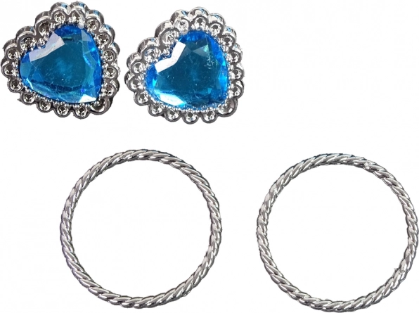 Komplet je posebej zasnovan za deklice, v pastelno modri barvi, okrašen z bleščečimi elementi in sijočimi kamni. Odlična izbira za pustne plese, rojstnodnevne zabave, tematske večere ali vsakodnevne domače stilizacije.