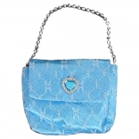 Stilna modra torbica z elegantnim srebrnim vzorcem in srčastim okraskom. Odlična tako za neformalne kot formalne priložnosti.