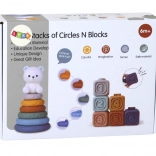 Izobraževalni komplet je idealna izbira za najmlajše otroke, ki združuje učenje in zabavo v enem. Zaradi raznolikosti elementov, kot so piramida z medvedkom in izobraževalne mehke kocke, otrok razvija svoje sposobnosti naravno in prijetno.