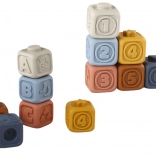 Komplet vsebuje tudi 6 mehkih kock, ki ponujajo mnoge izobraževalne funkcije. Vsaka kocka prikazuje številke, črke, slike sadja, živali in oblik, kar pomaga otroku spoznati osnovne pojme na igriv način in spodbuja kreativnost.