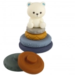 Barvita piramida z belim medvedom na vrhu pomaga otrokom pri koordinaciji oko-roka in logičnem razmišljanju.
