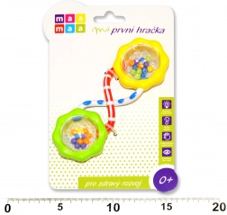 Ropotuljica v obliki uteži je idealna prva igrača za dojenčke. Prozorni konci z raznobarvnimi kroglicami ustvarjajo zanimive vizualne učinke in prijetno rožljanje, ki otroka motivira k prijemanju in raziskovanju. Zaradi kompaktne velikosti se udobno prilega vsaki otroški ročici.