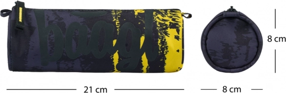 Z merami, idealnimi za standardne pisalne potrebščine, nudi dovolj shranjevalnega prostora, hkrati pa njegova kompaktna zasnova olajša prenašanje. Stilski videz dopolnjuje sodoben črno-rumen vzorec z izrazitim logotipom »Baagl«.