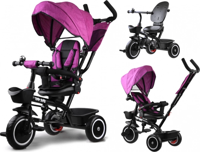 Praktičen otroški tricikel 3‑v‑1 TINY BIKE z vrtljivim sedežem in sončno strehico raste z vašim otrokom od 6 mesecev do 5 let. Ponuja udobje, 5-točkovne pasove, zložljivo strehico z mrežico, starševsko vodenje in brezvzdrževalna EVA kolesa za varne in gladke vožnje.