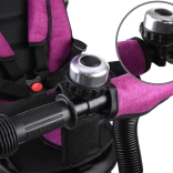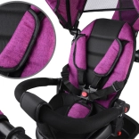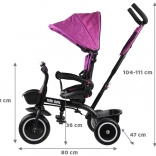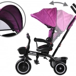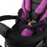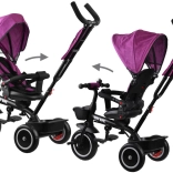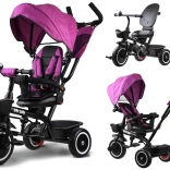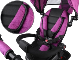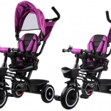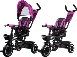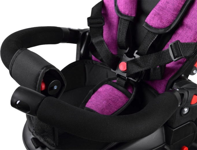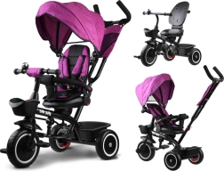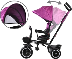 Ta večnamenski tricikel združuje prednosti vozička, poganjalca in klasičnega tricikla. Zahvaljujoč vrtljivemu sedežu lahko otroka vozite obrnjeno proti staršu ali v smeri vožnje. Mehko oblazinjenje, pettočkovni pasovi in snemljiva varnostna ograjica zagotavljajo maksimalno udobje in varnost.