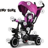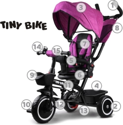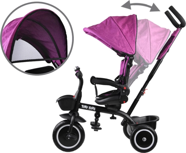 Praktičen otroški tricikel 3‑v‑1 TINY BIKE z vrtljivim sedežem in sončno strehico raste z vašim otrokom od 6 mesecev do 5 let. Ponuja udobje, 5-točkovne pasove, zložljivo strehico z mrežico, starševsko vodenje in brezvzdrževalna EVA kolesa za varne in gladke vožnje.
