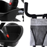 Starši bodo cenili po višini nastavljivo vodilno palico s penastim oprijemom, zavore na zadnjih kolesih za zanesljivo ustavljanje in brezzračna EVA kolesa, ki ne zahtevajo pumpanja. Ne manjkajo sprednja košarica, zadnja kadica, torbica/vrečka za dodatke ter praktičen zvonček za varno opozarjanje okolice.