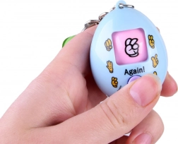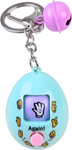 Lahek in vzdržljiv obesek z mini zaslonom prinaša priljubljeno igro kamen–škarje–papir vedno pri roki. Idealen za otroke in odrasle, odlično se poda na šolski nahrbtnik, torbico ali ključni snop. Preprosto upravljanje z enim gumbom in jasne ikone gest omogočajo hitro in intuitivno igro.