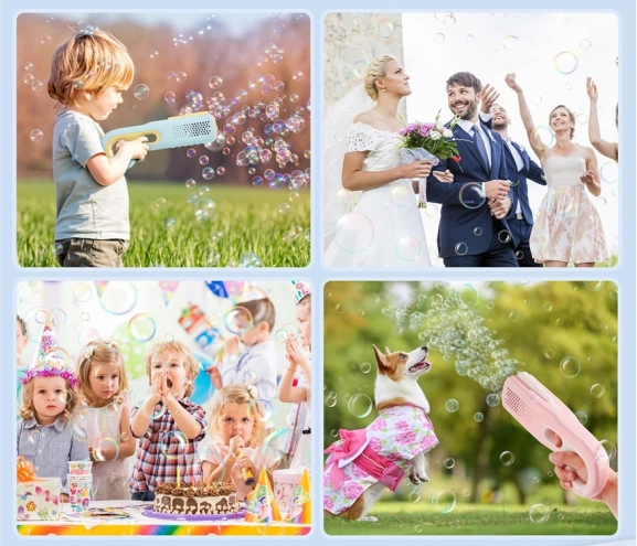 Odlično za vrt, rojstne dneve, poroke in igre s hišnimi ljubljenčki. Mehurčki ustvarijo čarobno vzdušje kjerkoli.