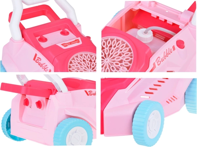 Začetek zabave je zelo preprost – dovolj je, da posodo napolnite s tekočino za milne mehurčke in s pritiskom na gumb zaženete kosilnico. Rezultat bodo čudoviti milni mehurčki, ki se hitro dvignejo v zrak, razpršijo naokoli in ustvarijo čarobno atmosfero.