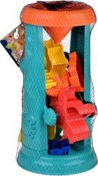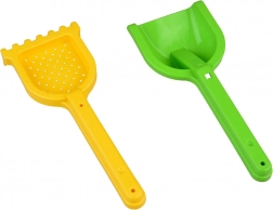 Vsebuje grabljice, lopatko in oblike za neskončno gradnjo in ustvarjanje v pesku.
