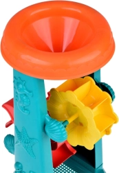 Otroški peskovni komplet je skrbno zasnovan z motivi morskih živali, kot so ribice in hobotnice. Največja atrakcija je 37-centimetrsko vodno kolo, v katero lahko otroci vsipavajo pesek ali nalivajo vodo ter opazujejo, kako se *dvojna kolesa* vrtijo. To spodbuja razvoj logičnega mišljenja in razumevanje vzročnih povezav.