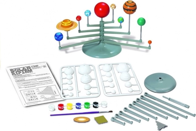 Namestite planete na stabilno stojalo z nosilci in raziskujte njihovo razporeditev. Odlična pomoč za šolske projekte in učenje doma.