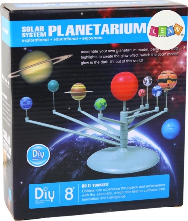 Ta DIY komplet združuje učenje in zabavo. Otroci sestavijo realistični model Osončja, spoznajo razporeditev planetov in jih nato pobarvajo po svoji domišljiji. Zaradi barve, ki sveti v temi, planetarij zaživi, ko ugasne svetloba, in spremeni sobo v mali kozmos.