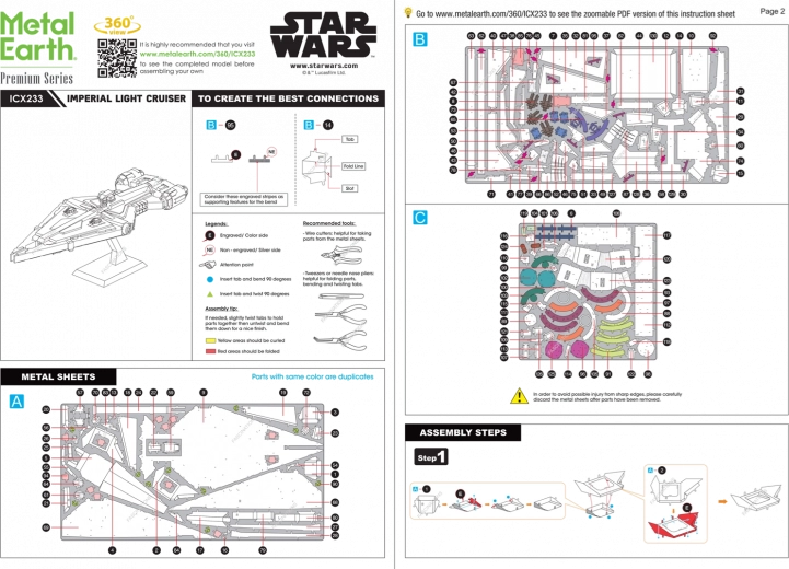Set za izdelavo fascinantnega kovinskega 3D modela. Sestavljanje sestavljanke METAL EARTH zahteva potrpežljivost in spretne roke. Končni rezultat pa v celoti poplača vložen trud. Miniaturne replike so impresivna in privlačna dekoracija. Iz kvadratnih jeklenih ploščic bodo pod vašimi rokami nastali podrobno izdelani, osupljivi modeli. Avtentičen videz 3D sestavljank METAL EARTH je dosežen z natančnim laserskim graviranjem. Orodje ni priloženo. DELOVNI POSTOPEK: Posamezne dele odstranite iz kovinskih ploščic, po potrebi uporabite majhne ščipalne klešče (niso priložene). Deli se med seboj povezujejo s ključavnicami, ki jih tvorita zatič (kljunček) in odprtina. Zatič upognite s pomočjo majhnih tankih klešč (niso priložene) ter postopoma spojite vse ključavnice, dokler ne nastane zelo realističen mojstrski izdelek! Dimenzije sestavljenega modela približno 17,2 × 7,1 × 6,4