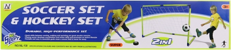 Omogočite svojim otrokom, da preizkusijo različne športe s tem univerzalnim golom, ki ga lahko uporabljajo tako za nogomet kot za hokej. Konstrukcija je izdelana iz kakovostne plastike, ki zagotavlja vzdržljivost in dolgo življenjsko dobo. Celoten set vsebuje vse, kar je potrebno za takojšnjo igro.