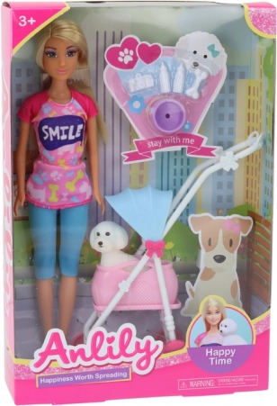 Punčka Anlily z lepimi dolgimi lasmi in barvitimi oblačili je idealna spremljevalka za male skrbnike. Z njo se lahko otroci vživijo v vlogo odgovornih lastnikov, ki peljejo kužka na sprehod ter skrbijo zanj s hranjenjem in igro.