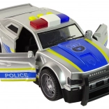 Policijski avto prinaša realističen videz z gumijastimi kolesi za stabilno in trpežno igro.