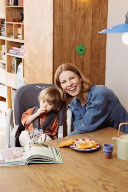 Stolček za hranjenje MoMi GOJO je opremljen s 5-točkovnimi varnostnimi pasovi, zato vaš malček sedi varno, medtem ko mu v miru pomagate razširiti jedilnik.